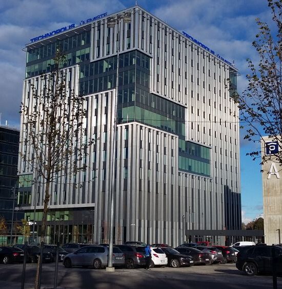Lähene majale hoovi/parkla poolt. Seal on kolm välisust, kõigist pääseb kontorite juurde. Palun möödu söögikohast, lillepoest ja puhkenurgast. Fuajee tagaosas on kaks väikest rohelist diivanit. Liftid jäävad neist vasakule ümber nurga. Trepist tulles palun helista, sest korruse uks avaneb vaid kaardiga.