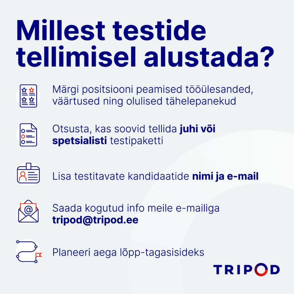 Hindamisteenuse tellimiseks kirjuta meile tripod@tripod.ee ning lisa: