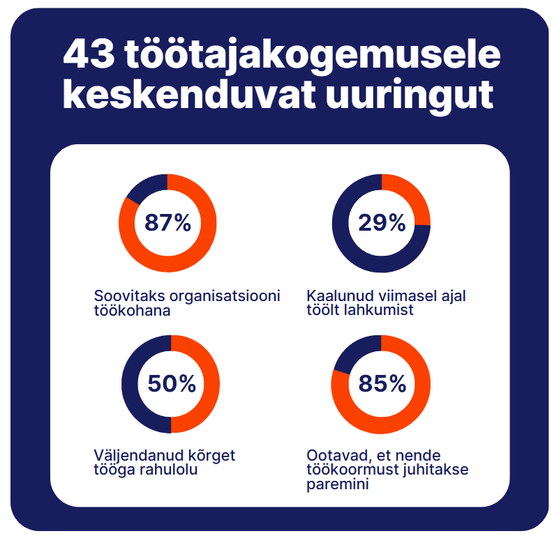 1. Meie 20-aastasele kogemusele organisatsioonide arendamise valdkonnas, mille käigus oleme kaardistanud kõige olulisemaid töötajate heaolu ning pühendumust kujundavaid tegureid. Kokku oleme kogunud 150 projekti jooksul üle 70 000 andmerea.